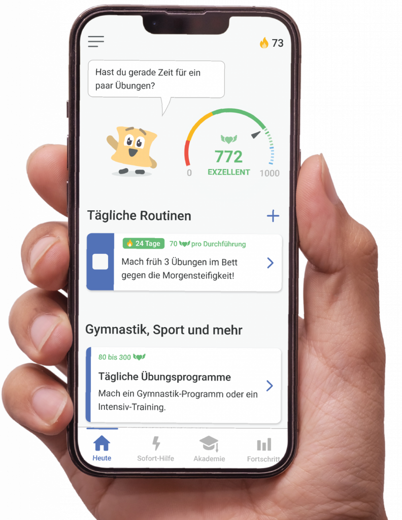 - Große Wissensbibliothek, Symptomtracker, Entspannungsübungen, & vieles mehr!